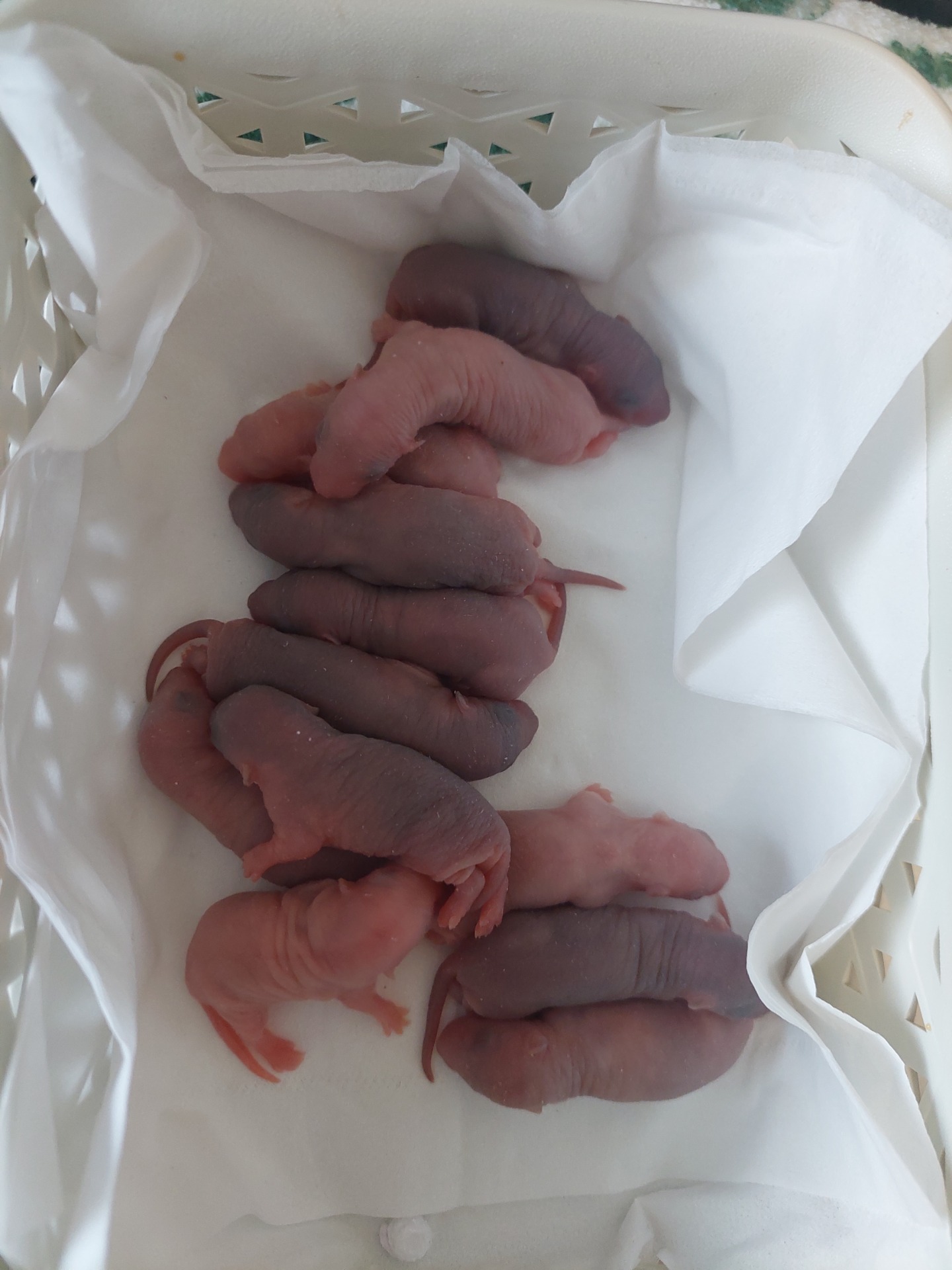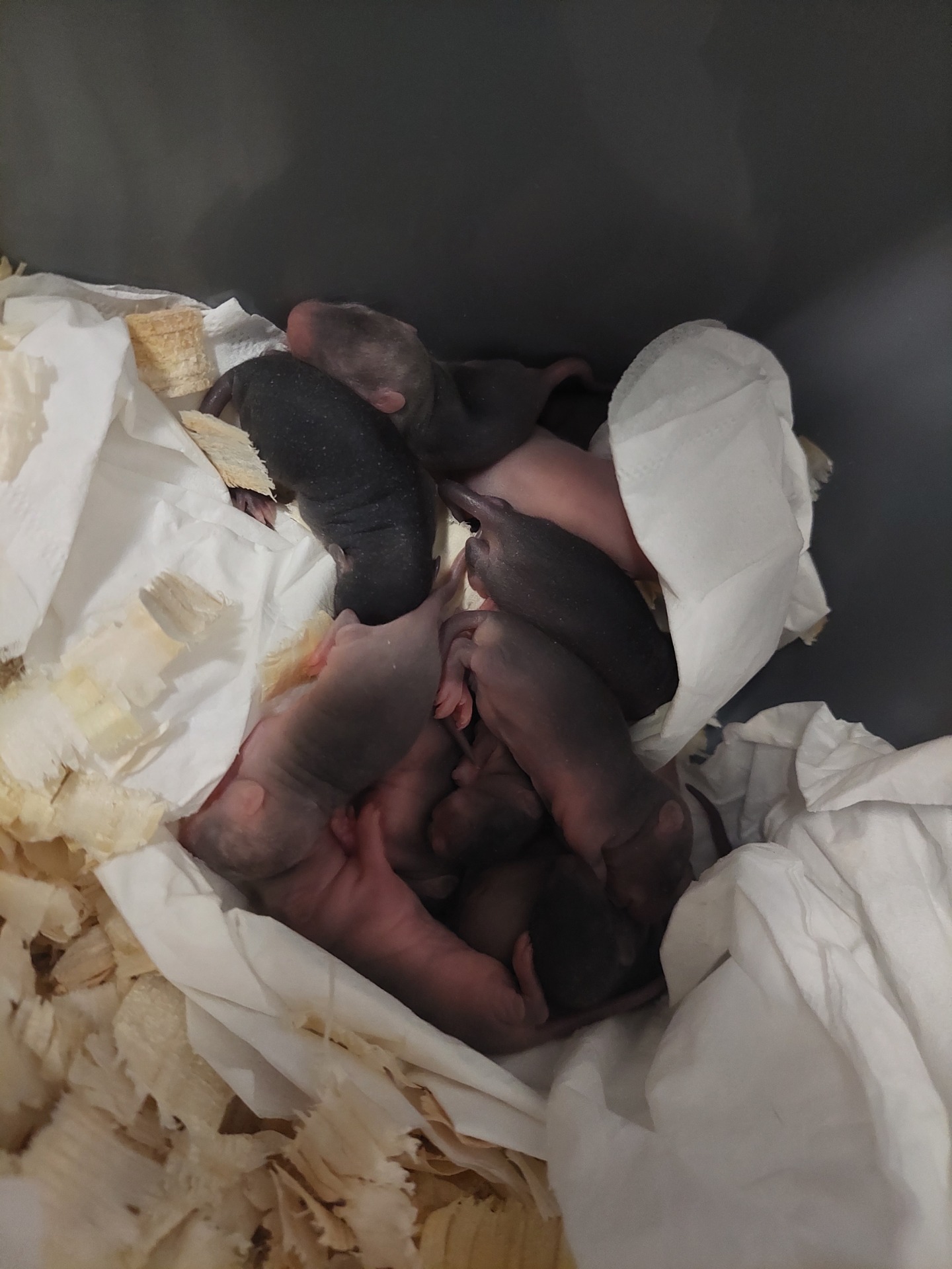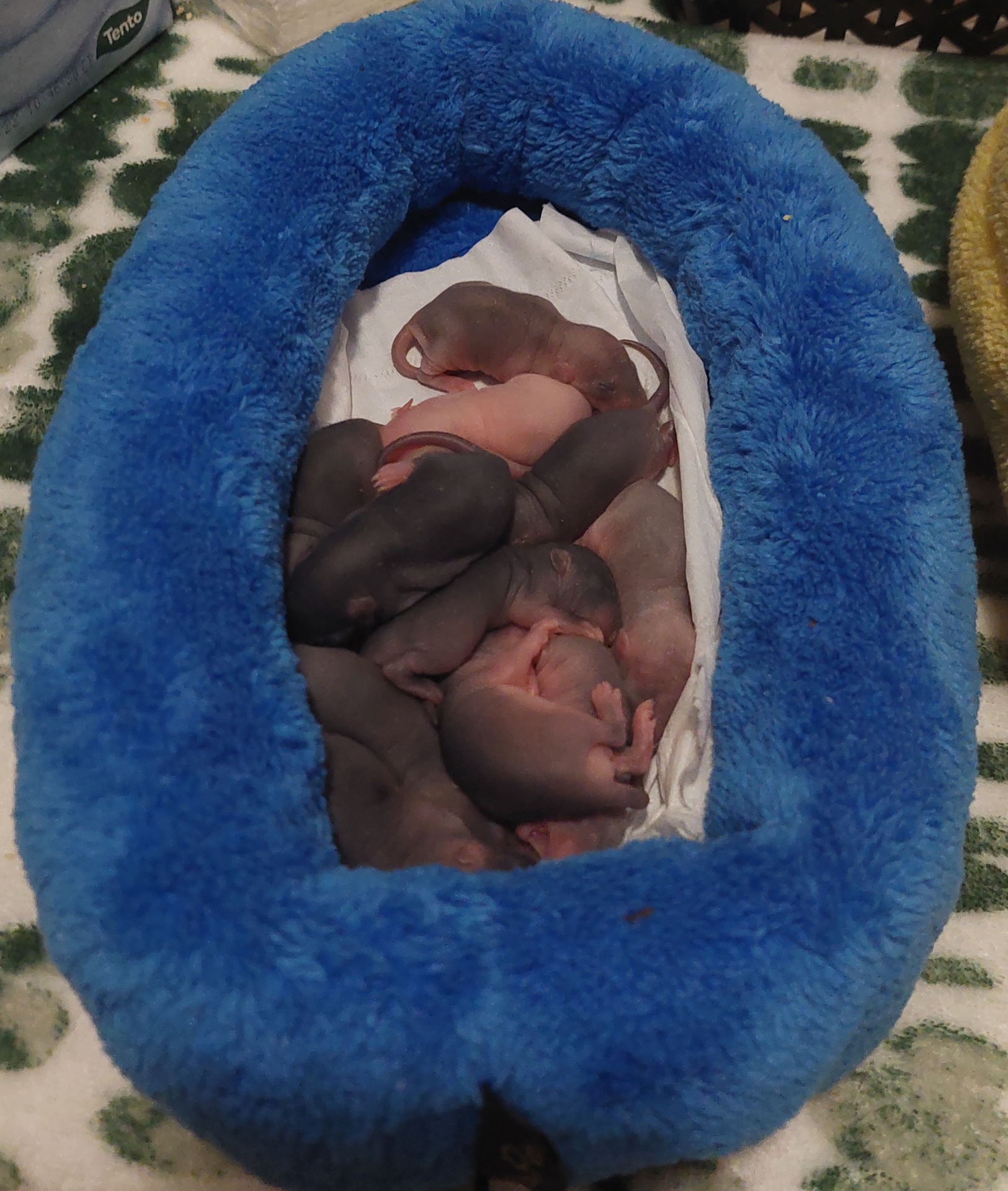 Miminá začínajú byť hebké na dotyk. Pomaly šplhajú mame z hniezda, ale zatiaľ si ich ešte stíha upratať :) Aj tie najmenšie už dobiehajú zvyšok partie a Dafne sa naďalej ukážkovo stará a je za to aj patrične odmenená.