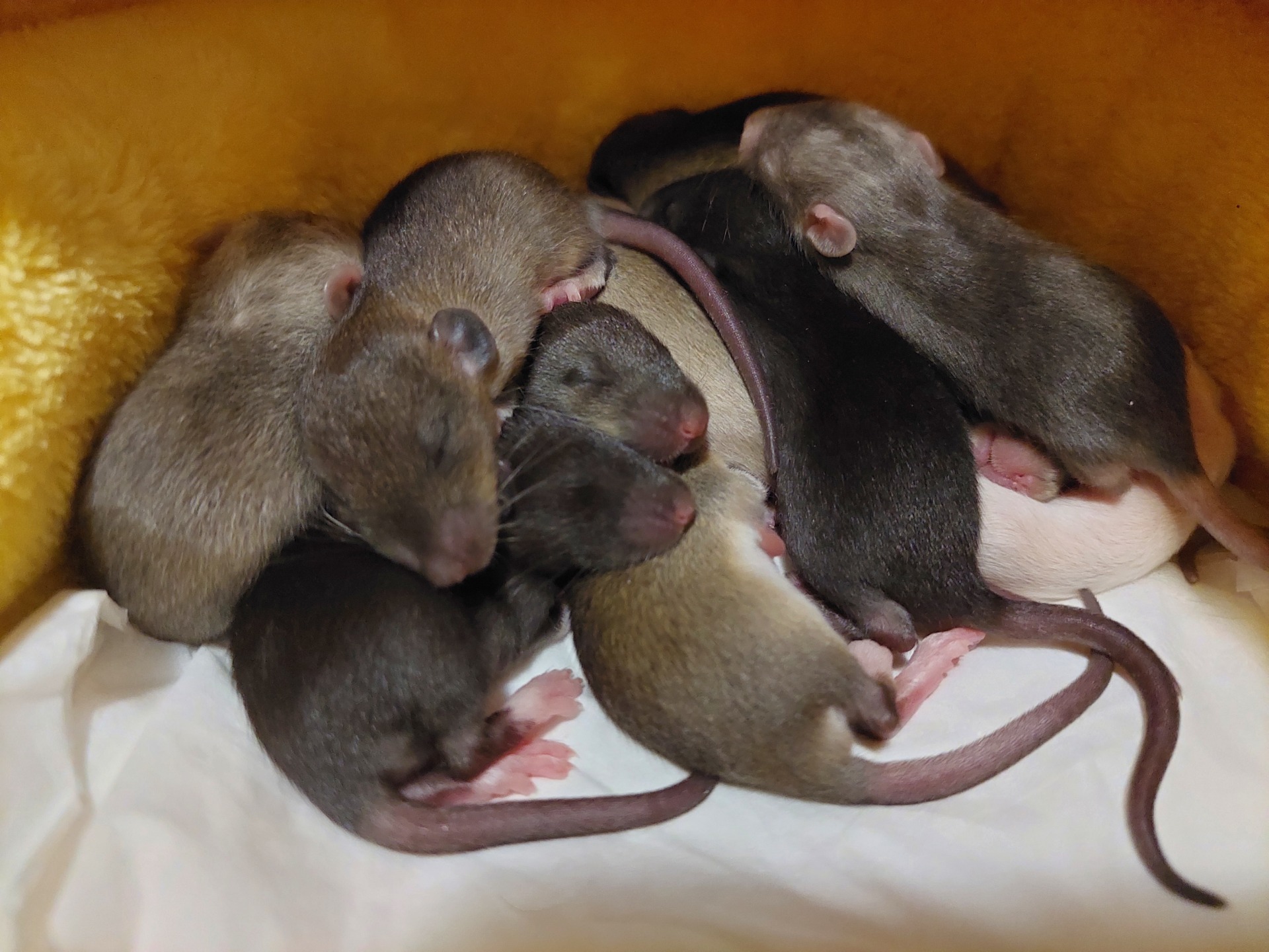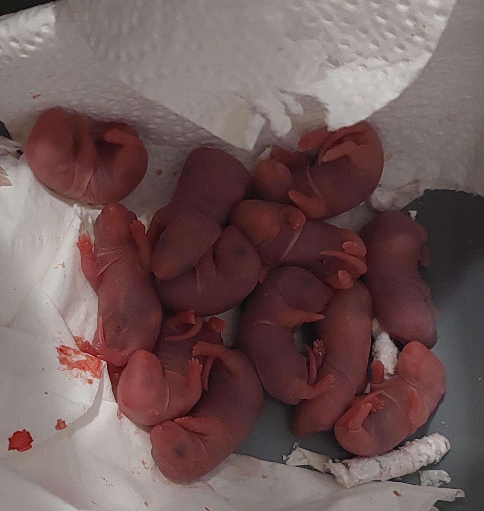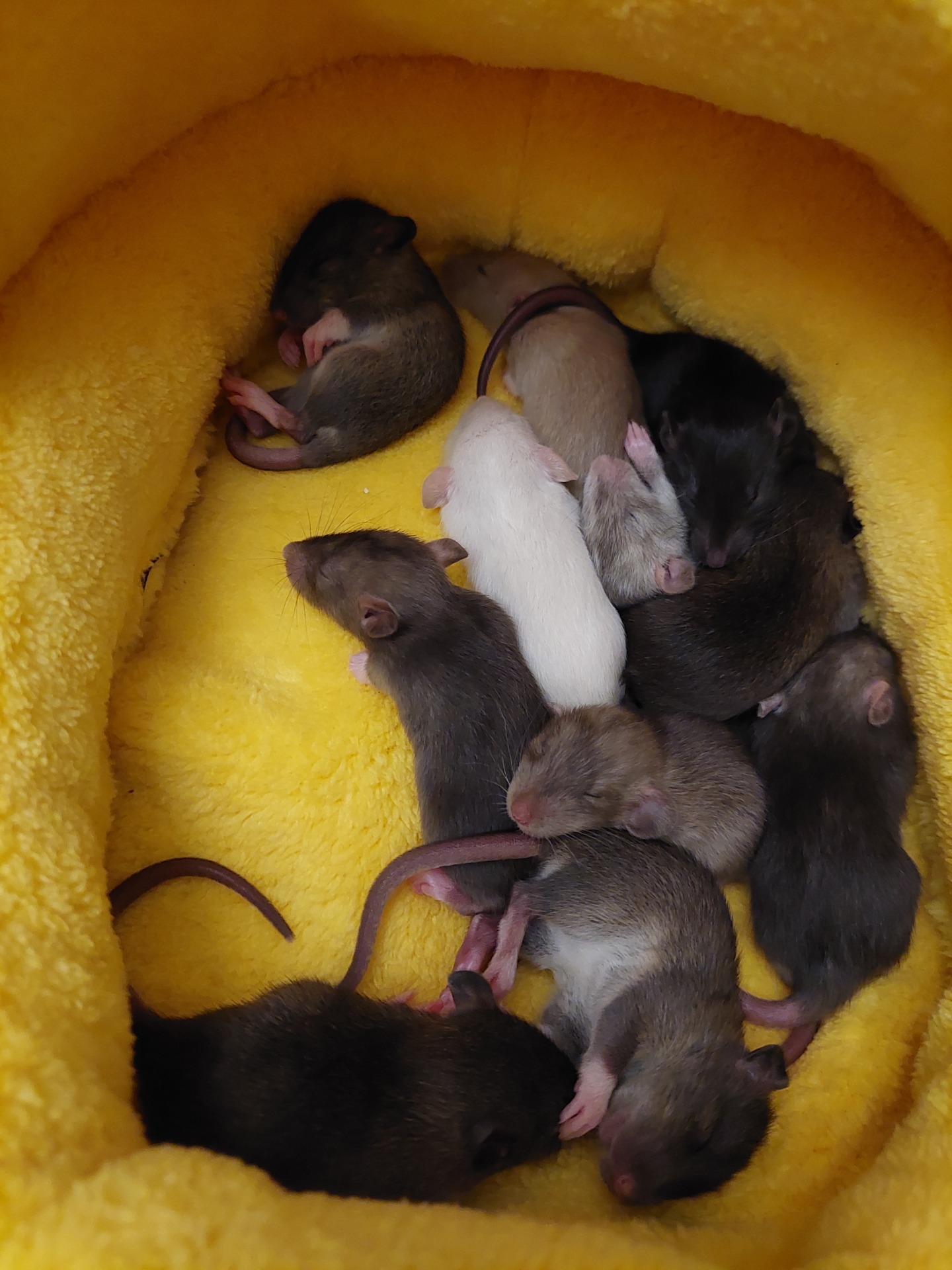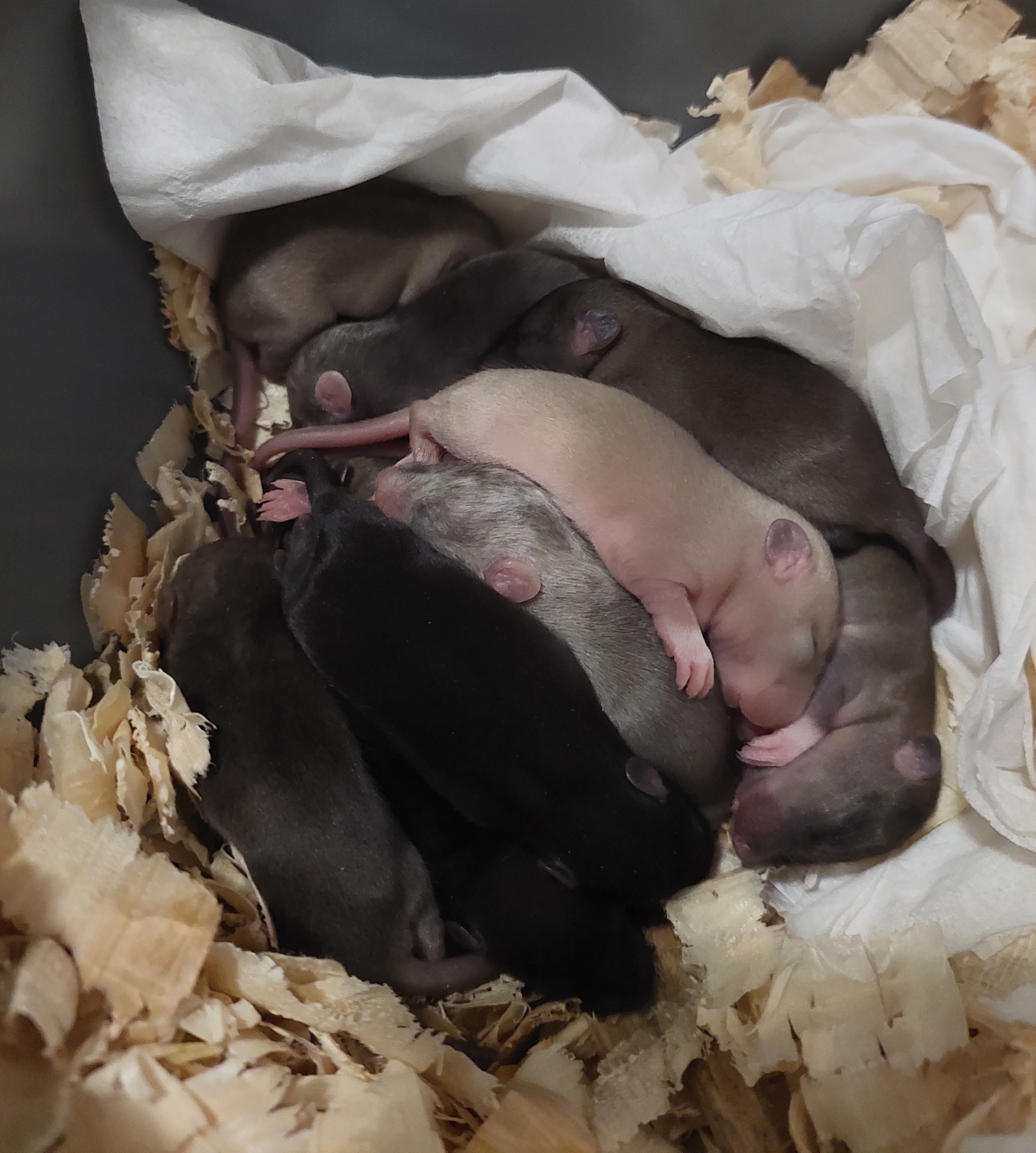 Miminá začínajú byť hebké na dotyk. Pomaly šplhajú mame z hniezda, ale zatiaľ si ich ešte stíha upratať :) Aj tie najmenšie už dobiehajú zvyšok partie a Dafne sa naďalej ukážkovo stará a je za to aj patrične odmenená.